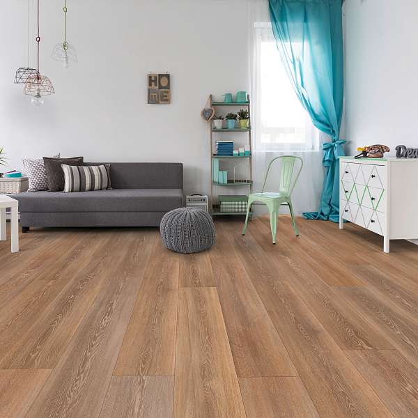 Это полностью готовое покрытие. Оно не требует финишной отделки – верхний слой с "Однополосный" рисунком прекрасно вписывается в любое оформление комнаты и хорошо смотрится со всеми настенными и потолочными материалами. Толщина доски составляет 8мм, что позволяет сделать пол прочным, устойчивым к прогибу. Ламинированная панель выдерживает большой вес мебели, на ней не остается следов от ножек и царапин. Материал хорошо держит тепло внутри помещения, не пропускает внутрь холод.